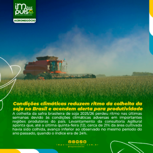 A colheita da safra brasileira de soja 2025/26 perdeu ritmo nas últimas semanas devido às condições climáticas adversas em importantes regiões produtoras do país. Levantamento