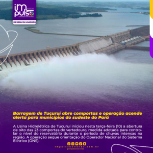 A Usina Hidrelétrica de Tucuruí iniciou nesta terça-feira (10) a abertura de oito das 23 comportas do vertedouro, medida adotada para controlar o nível do