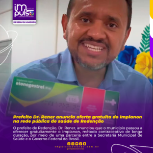 O prefeito de Redenção, Dr. Rener, anunciou que o município passou a oferecer gratuitamente o Implanon, método contraceptivo de longa duração, por meio de uma