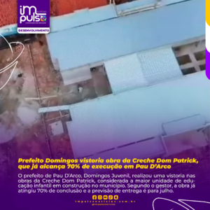 O prefeito de Pau D’Arco, Domingos Juvenil, realizou uma vistoria nas obras da Creche Dom Patrick, considerada a maior unidade de educação infantil em construção