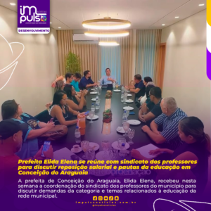 A prefeita de Conceição do Araguaia, Elida Elena, recebeu nesta semana a coordenação do sindicato dos professores do município para discutir demandas da categoria e