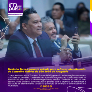 O deputado estadual Torrinho Torres (MDB) garantiu a destinação de um veículo para o Conselho Tutelar de São João do Araguaia, no sudeste do Pará.