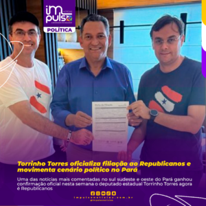 Uma das notícias mais comentadas no sul sudeste e oeste do Pará ganhou confirmação oficial nesta semana o deputado estadual Torrinho Torres agora é Republicanos