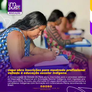 A Universidade do Estado do Pará abriu inscrições para o processo seletivo do Mestrado Profissional em Educação Escolar Indígena, com ingresso previsto para 2026. Ao