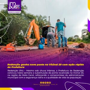 Redenção (PA) – Mesmo sob chuva intensa, a Prefeitura de Redenção concluiu nesta semana a substituição da ponte localizada na Vicinal 20, na região da