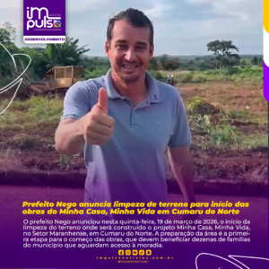 O prefeito Nego anunciou nesta quinta-feira, 19 de março de 2026, o início da limpeza do terreno onde será construído o projeto Minha Casa, Minha