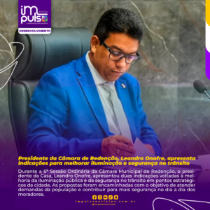 Durante a 6ª Sessão Ordinária da Câmara Municipal de Redenção, o presidente da Casa, Leandro Onofre, apresentou duas indicações voltadas à melhoria da iluminação pública
