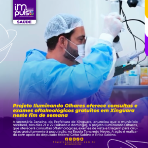 A secretária Janaína, da Prefeitura de Xinguara, anunciou que o município receberá, nos dias 21 e 22 (sábado e domingo), o projeto Iluminando Olhares, que