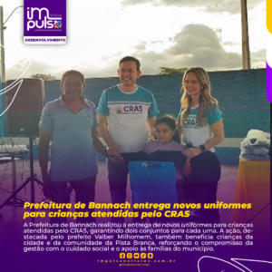 A Prefeitura de Bannach realizou a entrega de novos uniformes para crianças atendidas pelo CRAS, garantindo dois conjuntos para cada uma. A ação, destacada pelo