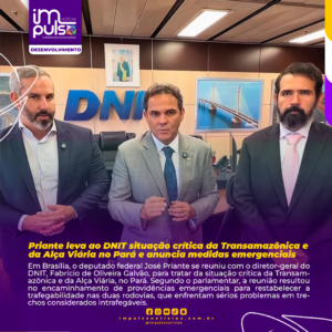 Em Brasília, o deputado federal José Priante se reuniu com o diretor-geral do DNIT, Fabrício de Oliveira Galvão, para tratar da situação crítica da Transamazônica