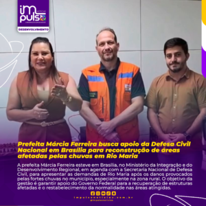 A prefeita Márcia Ferreira esteve em Brasília, no Ministério da Integração e do Desenvolvimento Regional, em agenda com a Secretaria Nacional de Defesa Civil, para