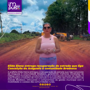 A prefeita Elida Elena entregou a recuperação da estrada que liga Conceição do Araguaia à comunidade Bradesco, garantindo melhores condições de tráfego para moradores, produtores