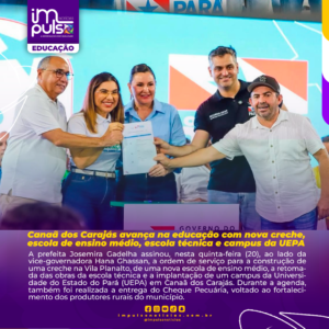 A prefeita Josemira Gadelha assinou, nesta quinta-feira (20), ao lado da vice-governadora Hana Ghassan, a ordem de serviço para a construção de uma creche na