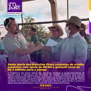 A Prefeitura de Santa Maria das Barreiras recebeu o superintendente do INCRA para a assinatura de contratos de crédito produtivo que somam aproximadamente R$ 3
