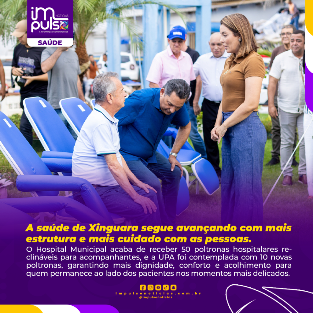 O Hospital Municipal acaba de receber 50 poltronas hospitalares reclináveis para acompanhantes, e a UPA foi contemplada com 10 novas poltronas, garantindo mais dignidade, conforto e acolhimento para quem permanece ao lado dos pacientes nos momentos mais delicados.