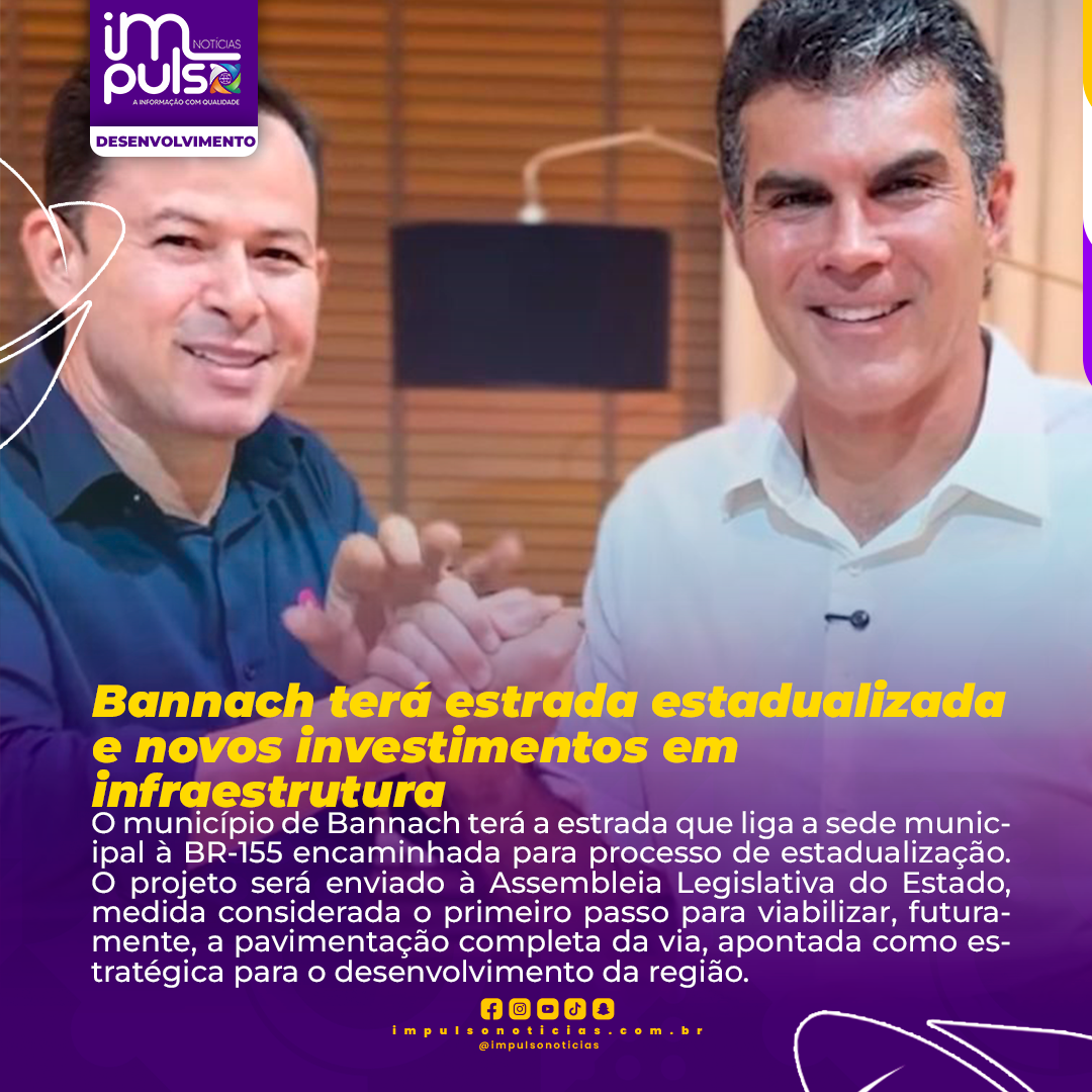 O município de Bannach terá a estrada que liga a sede municipal à BR-155 encaminhada para processo de estadualização. O projeto será enviado à Assembleia Legislativa do Estado, medida considerada o primeiro passo para viabilizar, futuramente, a pavimentação completa da via, apontada como estratégica para o desenvolvimento da região.
