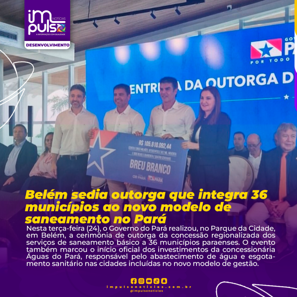 Nesta terça-feira (24), o Governo do Pará realizou, no Parque da Cidade, em Belém, a cerimônia de outorga da concessão regionalizada dos serviços de saneamento básico a 36 municípios paraenses. O evento também marcou o início oficial dos investimentos da concessionária Águas do Pará, responsável pelo abastecimento de água e esgotamento sanitário nas cidades incluídas no novo modelo de gestão.