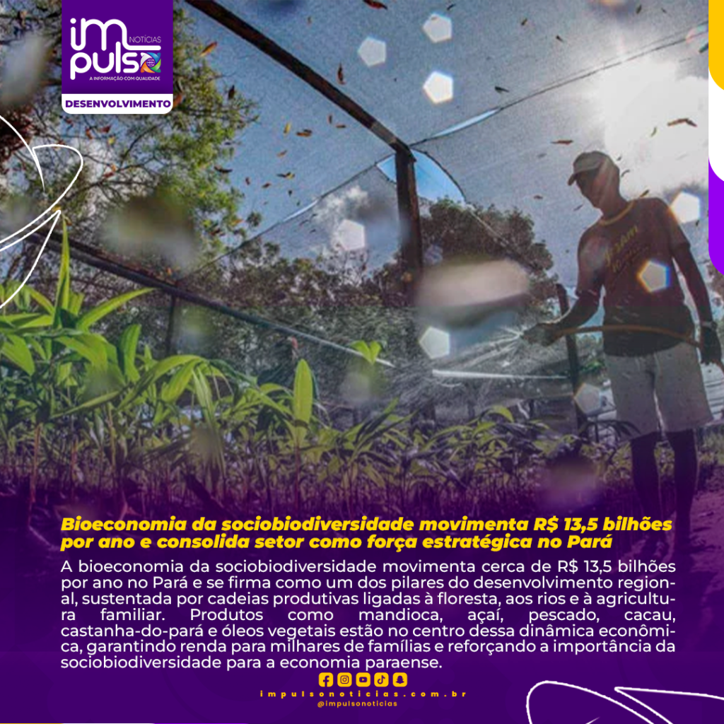 A bioeconomia da sociobiodiversidade movimenta cerca de R$ 13,5 bilhões por ano no Pará e se firma como um dos pilares do desenvolvimento regional, sustentada por cadeias produtivas ligadas à floresta, aos rios e à agricultura familiar. Produtos como mandioca, açaí, pescado, cacau, castanha-do-pará e óleos vegetais estão no centro dessa dinâmica econômica, garantindo renda para milhares de famílias e reforçando a importância da sociobiodiversidade para a economia paraense.