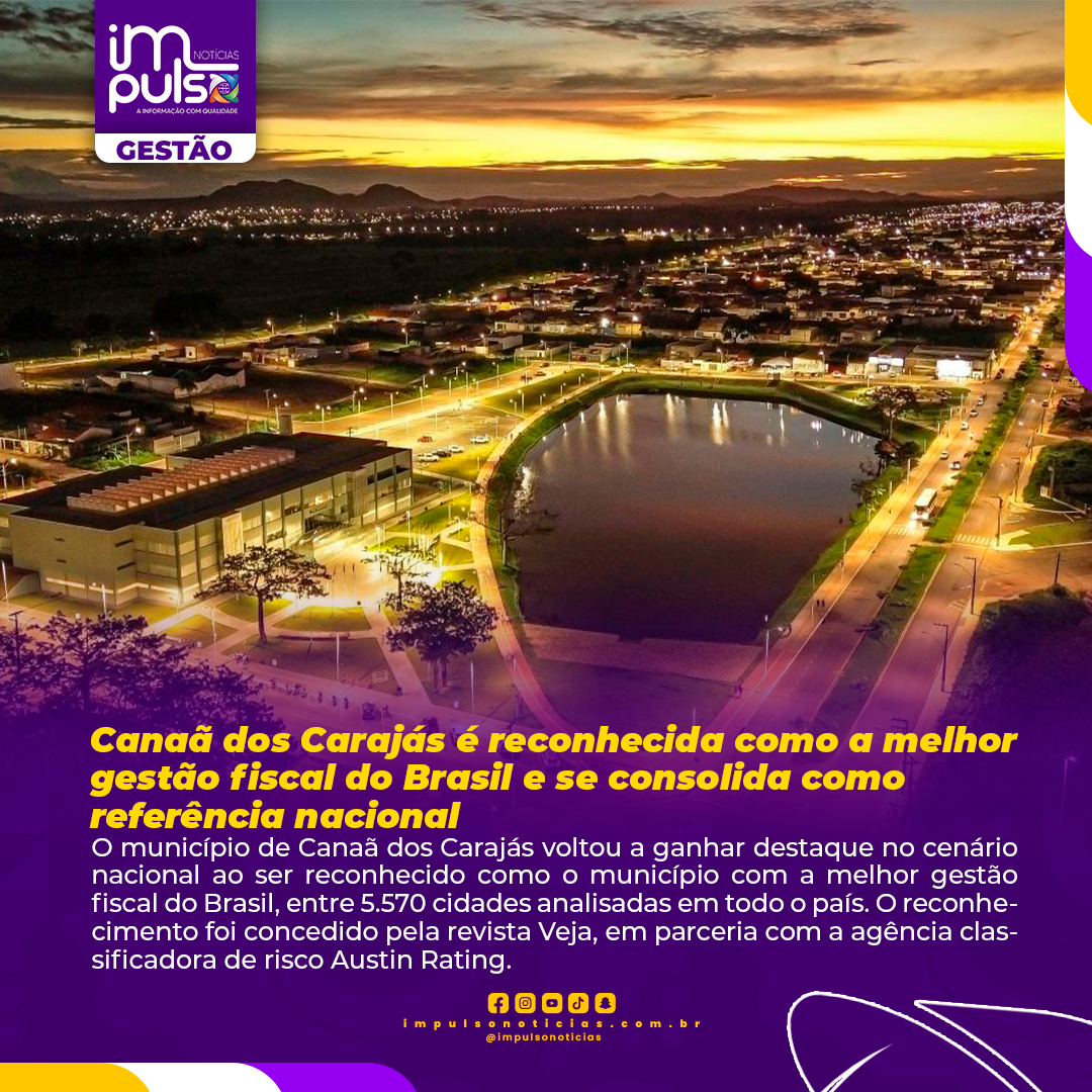 O município de Canaã dos Carajás voltou a ganhar destaque no cenário nacional ao ser reconhecido como o município com a melhor gestão fiscal do Brasil, entre 5.570 cidades analisadas em todo o país. O reconhecimento foi concedido pela revista Veja, em parceria com a agência classificadora de risco Austin Rating.