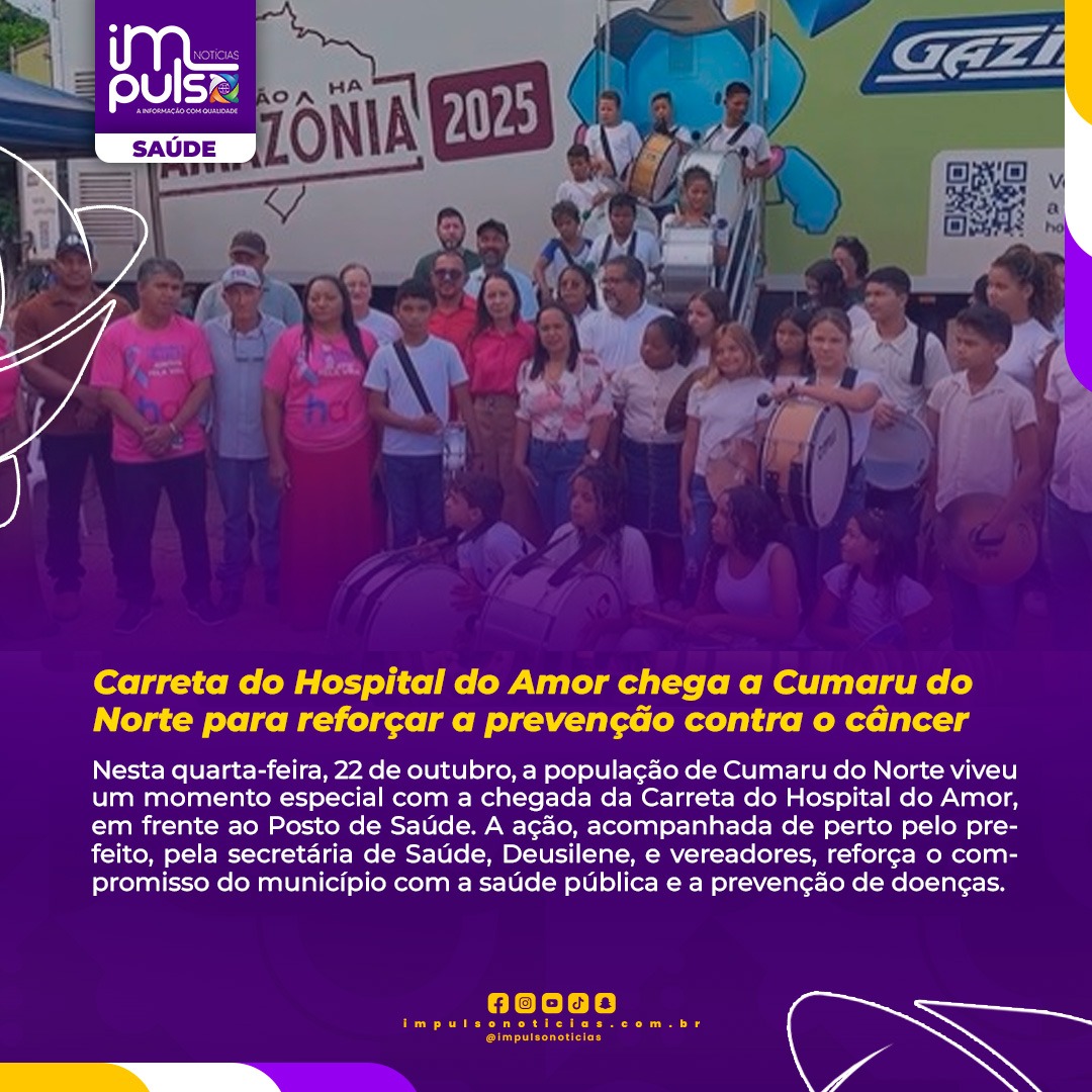 Nesta quarta-feira, 22 de outubro, a cidade de Cumaru do Norte foi contemplada com a chegada da Carreta do Hospital do Amor, que estacionou em frente ao Posto de Saúde para oferecer exames gratuitos à população como parte de uma ampla campanha de prevenção ao câncer. A iniciativa, acompanhada de perto pelo prefeito Nego, o vice Ribinha e pela secretária de Saúde, Deusilene, e por vereadores, representa um marco importante no cuidado com a saúde pública no município.