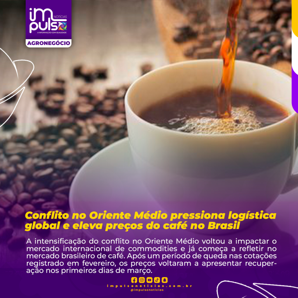 A intensificação do conflito no Oriente Médio voltou a impactar o mercado internacional de commodities e já começa a refletir no mercado brasileiro de café. Após um período de queda nas cotações registrado em fevereiro, os preços voltaram a apresentar recuperação nos primeiros dias de março.