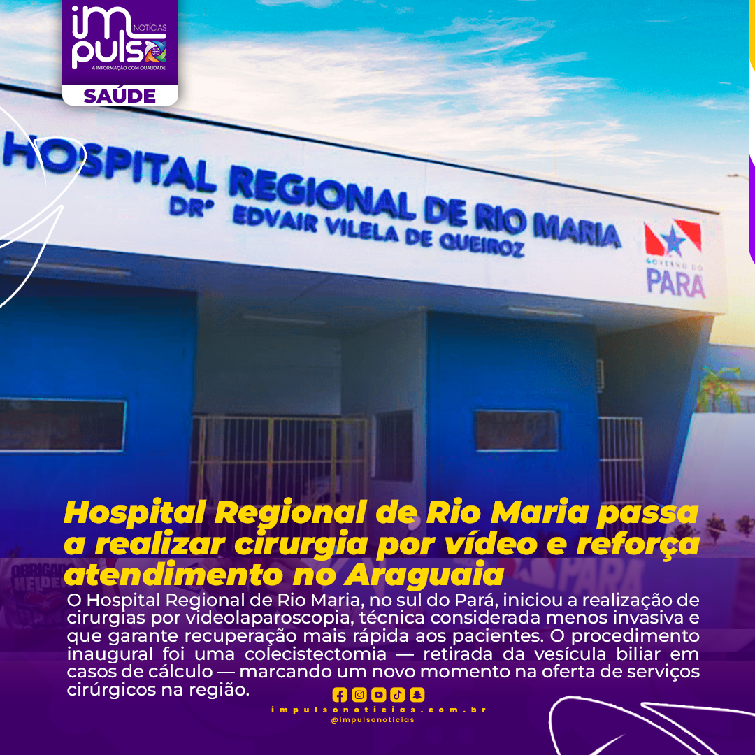 O Hospital Regional de Rio Maria, no sul do Pará, iniciou a realização de cirurgias por videolaparoscopia, técnica considerada menos invasiva e que garante recuperação mais rápida aos pacientes. O procedimento inaugural foi uma colecistectomia — retirada da vesícula biliar em casos de cálculo — marcando um novo momento na oferta de serviços cirúrgicos na região.