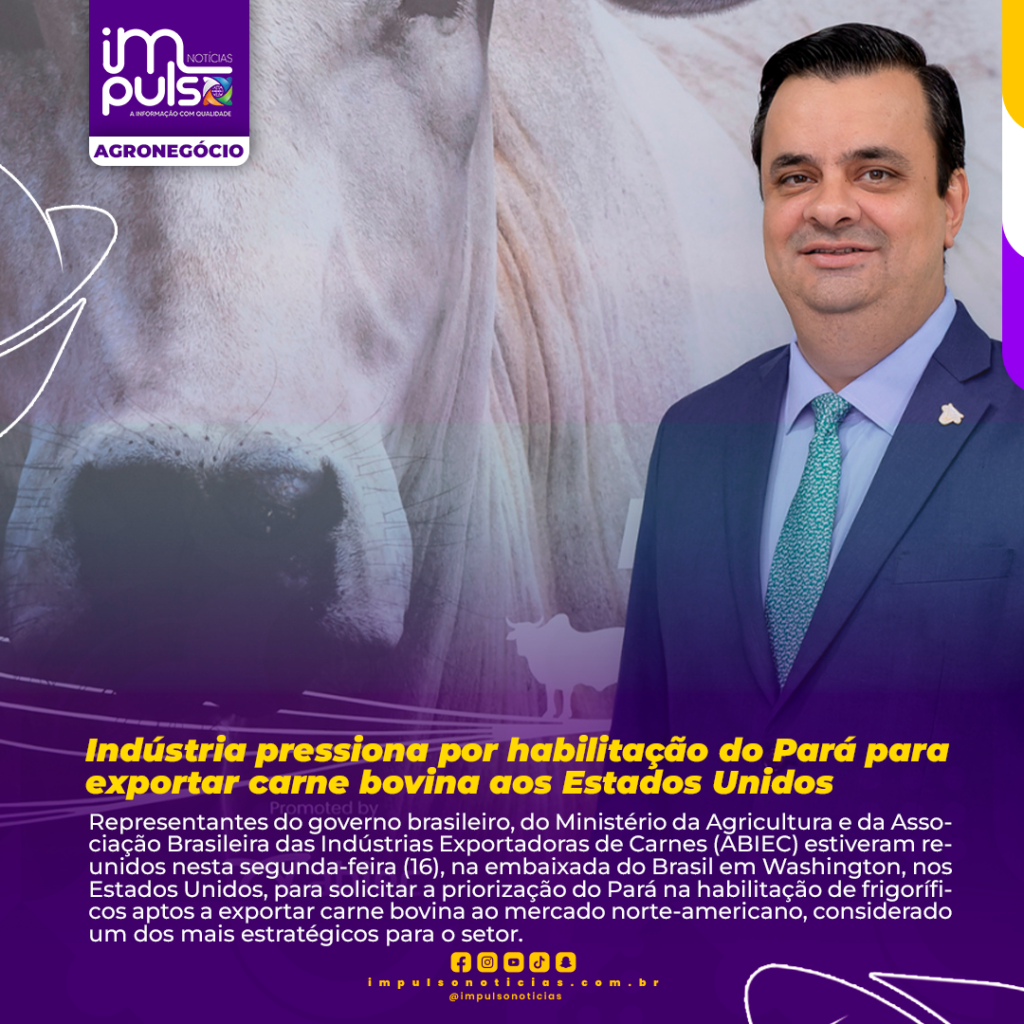 Representantes do governo brasileiro, do Ministério da Agricultura e da Associação Brasileira das Indústrias Exportadoras de Carnes (ABIEC) estiveram reunidos nesta segunda-feira (16), na embaixada do Brasil em Washington, nos Estados Unidos, para solicitar a priorização do Pará na habilitação de frigoríficos aptos a exportar carne bovina ao mercado norte-americano, considerado um dos mais estratégicos para o setor.