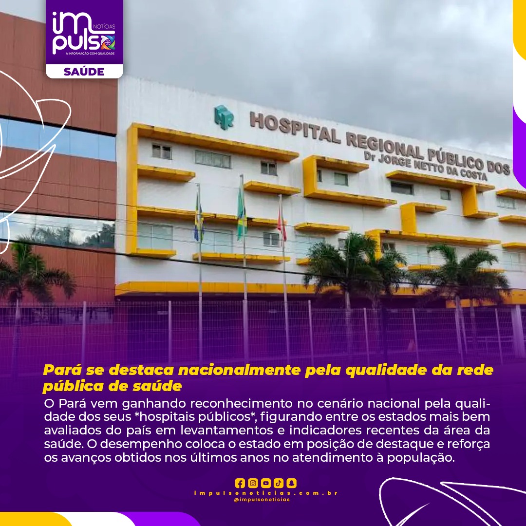 O Pará vem ganhando reconhecimento no cenário nacional pela qualidade dos seus hospitais públicos, figurando entre os estados mais bem avaliados do país em levantamentos e indicadores recentes da área da saúde. O desempenho coloca o estado em posição de destaque e reforça os avanços obtidos nos últimos anos no atendimento à população.