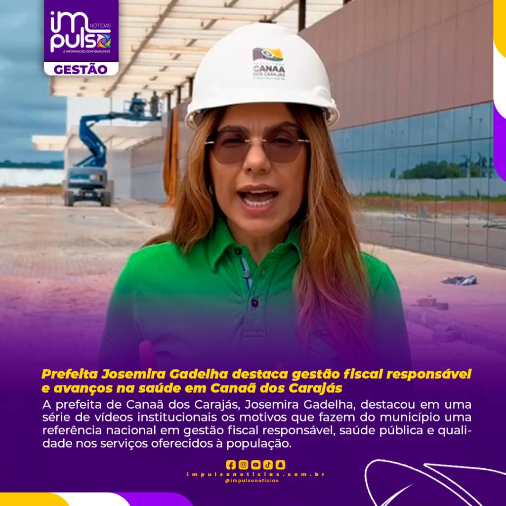 A prefeita de Canaã dos Carajás, Josemira Gadelha, destacou em uma série de vídeos institucionais os motivos que fazem do município uma referência nacional em gestão fiscal responsável, saúde pública e qualidade nos serviços oferecidos à população.