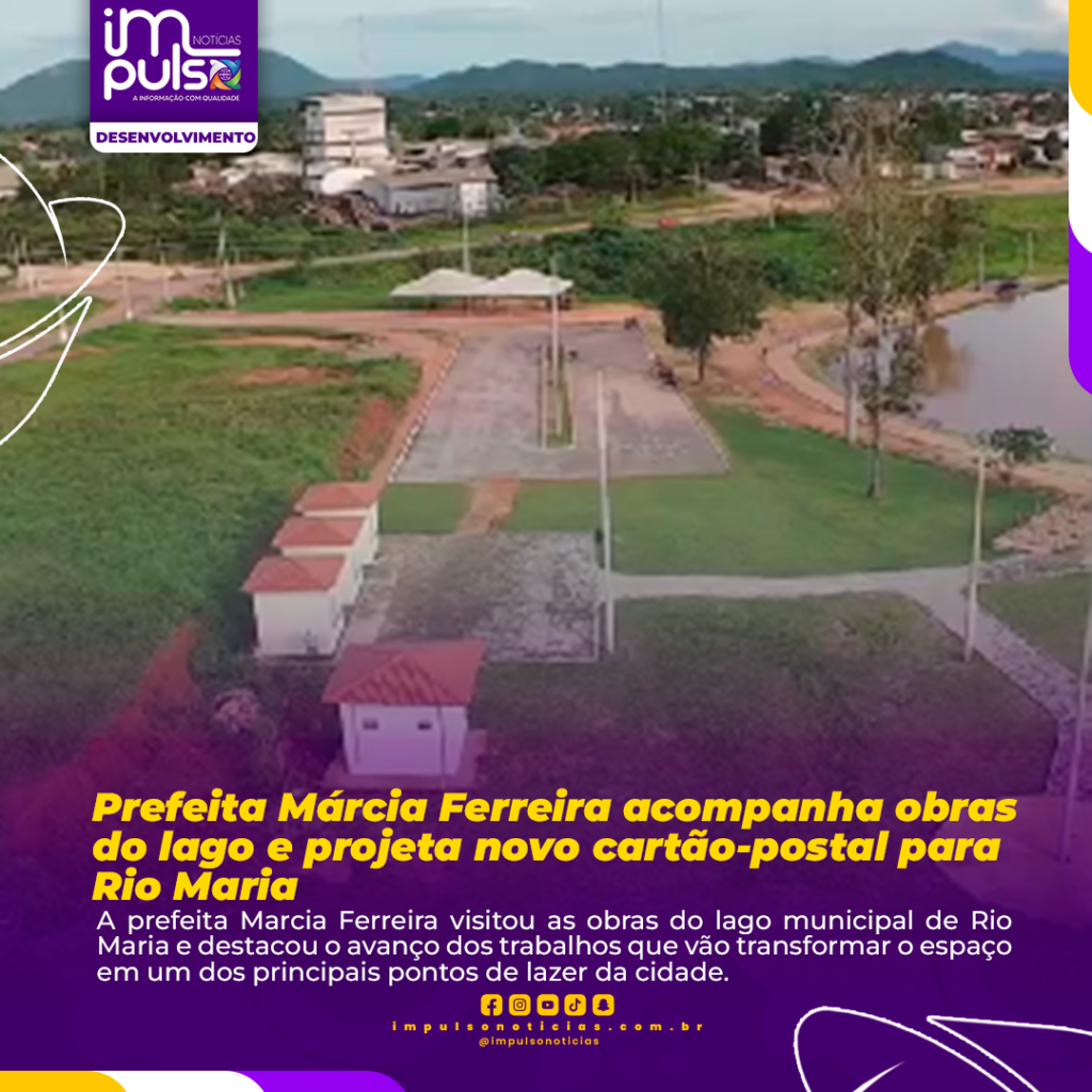 A prefeita Marcia Ferreira visitou as obras do lago municipal de Rio Maria e destacou o avanço dos trabalhos que vão transformar o espaço em um dos principais pontos de lazer da cidade.