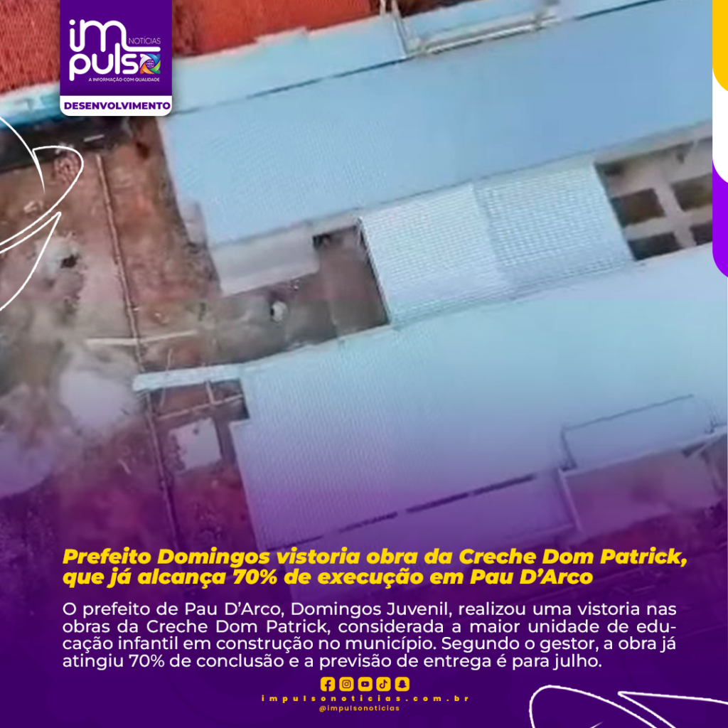 A Creche Dom Patrick deverá atender centenas de crianças de Pau D’Arco, contribuindo para melhorar a estrutura educacional e apoiar as famílias do município.