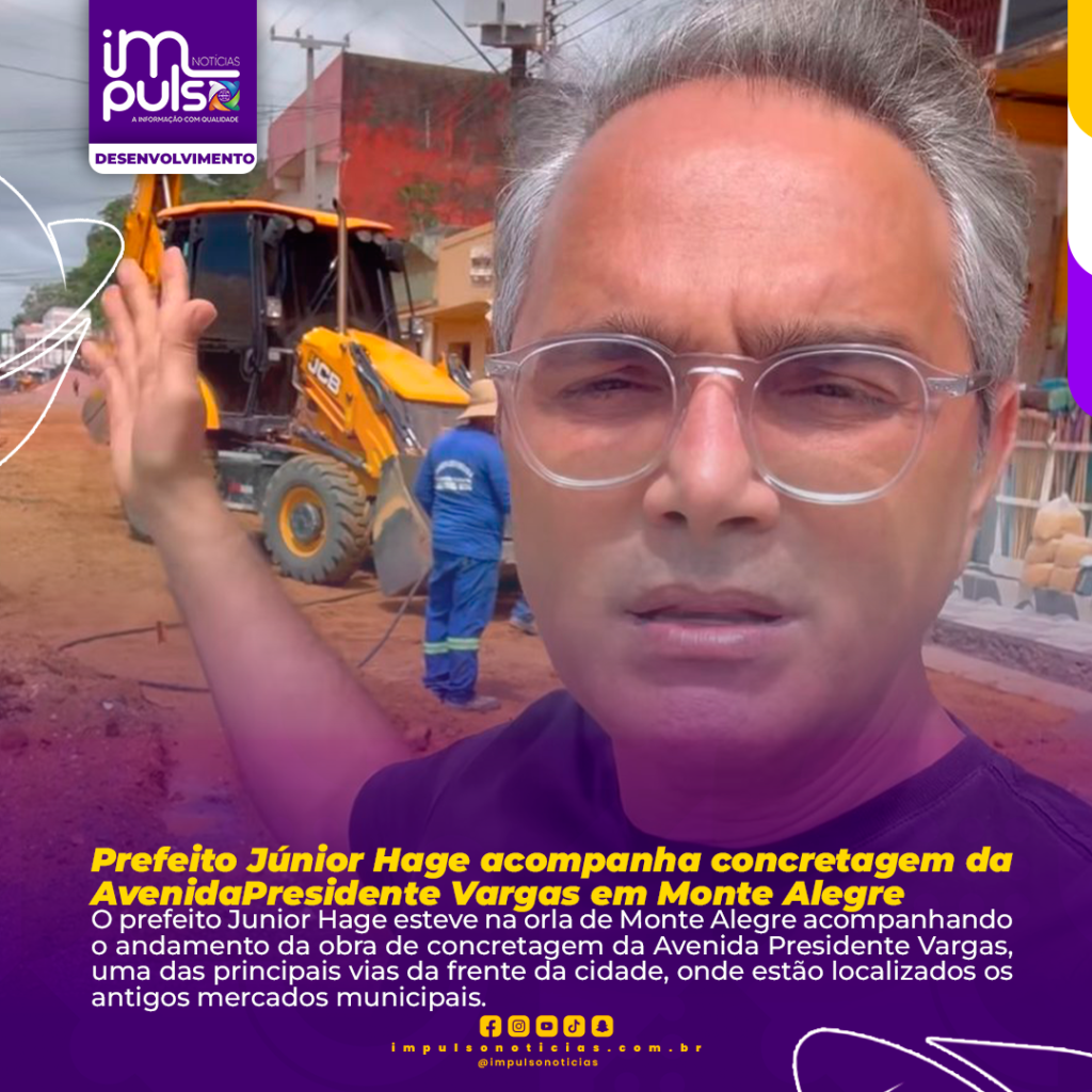 O prefeito Junior Hage esteve na orla de Monte Alegre acompanhando o andamento da obra de concretagem da Avenida Presidente Vargas, uma das principais vias da frente da cidade, onde estão localizados os antigos mercados municipais.