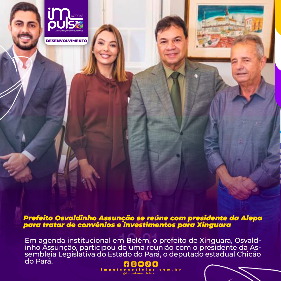 Em agenda institucional em Belém, o prefeito de Xinguara, Osvaldinho Assunção, participou de uma reunião com o presidente da Assembleia Legislativa do Estado do Pará, o deputado estadual Chicão do Pará.