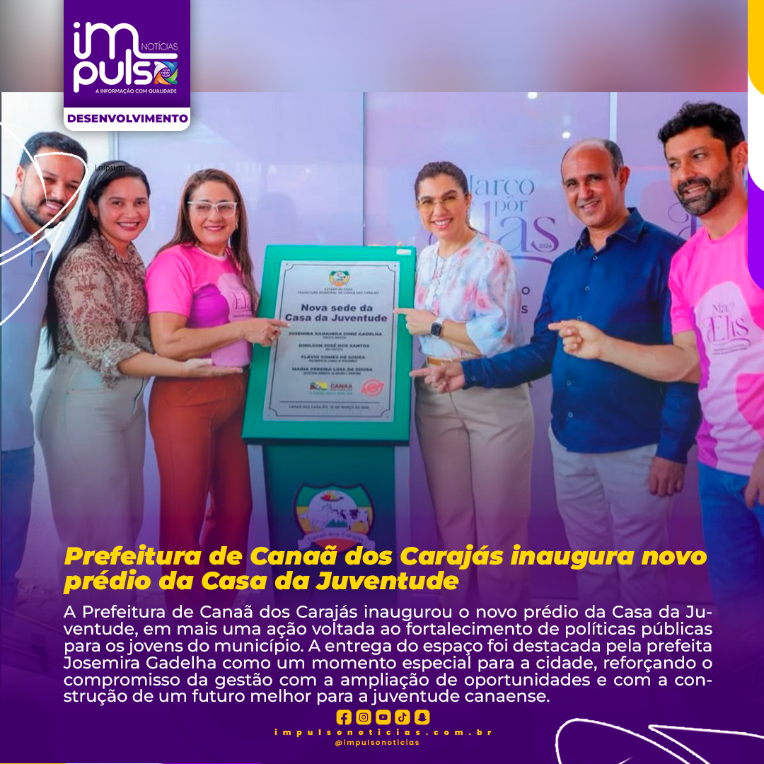 A Prefeitura de Canaã dos Carajás inaugurou o novo prédio da Casa da Juventude, em mais uma ação voltada ao fortalecimento de políticas públicas para os jovens do município. A entrega do espaço foi destacada pela prefeita Josemira Gadelha como um momento especial para a cidade, reforçando o compromisso da gestão com a ampliação de oportunidades e com a construção de um futuro melhor para a juventude canaense.