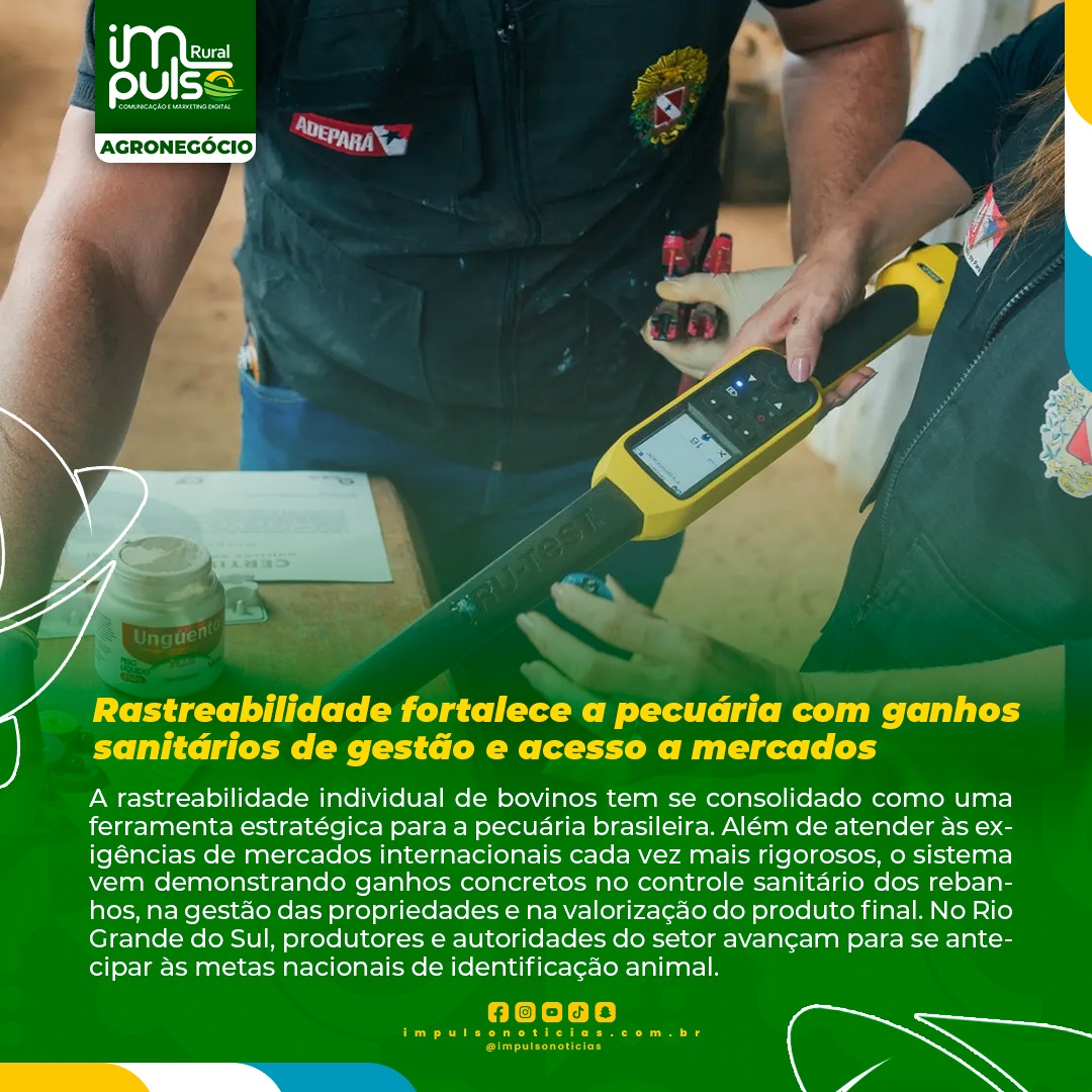 A rastreabilidade individual de bovinos tem se consolidado como uma ferramenta estratégica para a pecuária brasileira. Além de atender às exigências de mercados internacionais cada vez mais rigorosos, o sistema vem demonstrando ganhos concretos no controle sanitário dos rebanhos, na gestão das propriedades e na valorização do produto final. No Rio Grande do Sul, produtores e autoridades do setor avançam para se antecipar às metas nacionais de identificação animal.