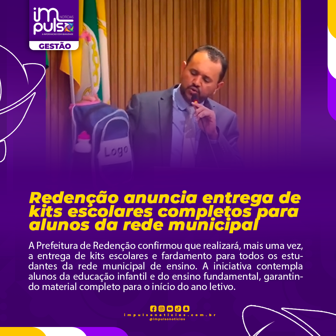 A Prefeitura de Redenção confirmou que realizará, mais uma vez, a entrega de kits escolares e fardamento para todos os estudantes da rede municipal de ensino. A iniciativa contempla alunos da educação infantil e do ensino fundamental, garantindo material completo para o início do ano letivo.