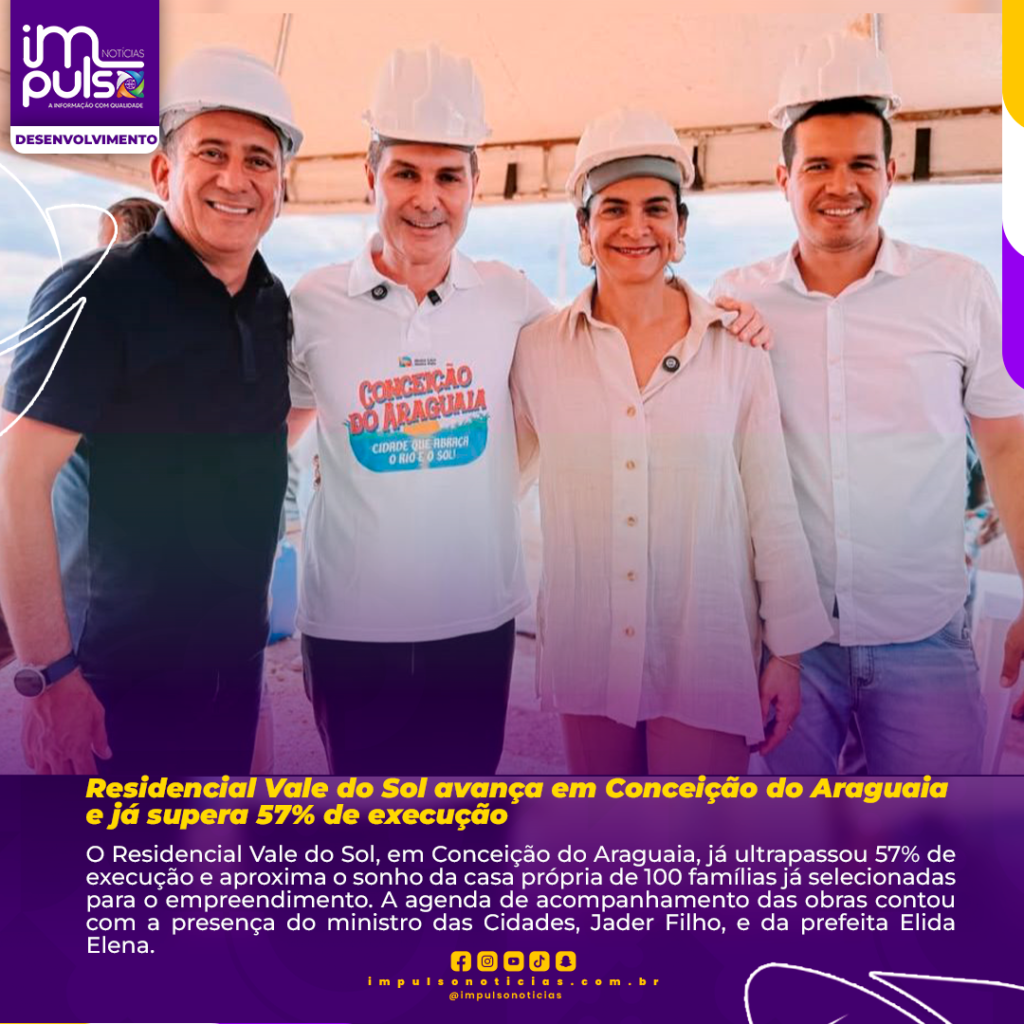O Residencial Vale do Sol, em Conceição do Araguaia, já ultrapassou 57% de execução e aproxima o sonho da casa própria de 100 famílias já selecionadas para o empreendimento. A agenda de acompanhamento das obras contou com a presença do ministro das Cidades, Jader Filho, e da prefeita Elida Elena.