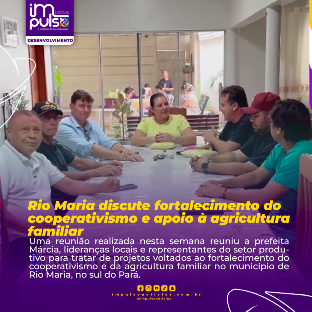 Uma reunião realizada nesta semana reuniu a prefeita Márcia, lideranças locais e representantes do setor produtivo para tratar de projetos voltados ao fortalecimento do cooperativismo e da agricultura familiar no município de Rio Maria, no sul do Pará.