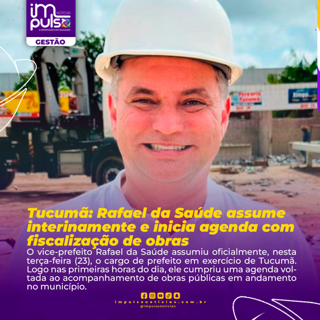 O vice-prefeito Rafael da Saúde assumiu oficialmente, nesta terça-feira (23), o cargo de prefeito em exercício de Tucumã. Logo nas primeiras horas do dia, ele cumpriu uma agenda voltada ao acompanhamento de obras públicas em andamento no município.