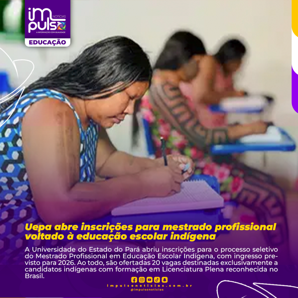 A Universidade do Estado do Pará abriu inscrições para o processo seletivo do Mestrado Profissional em Educação Escolar Indígena, com ingresso previsto para 2026. Ao todo, são ofertadas 20 vagas destinadas exclusivamente a candidatos indígenas com formação em Licenciatura Plena reconhecida no Brasil.